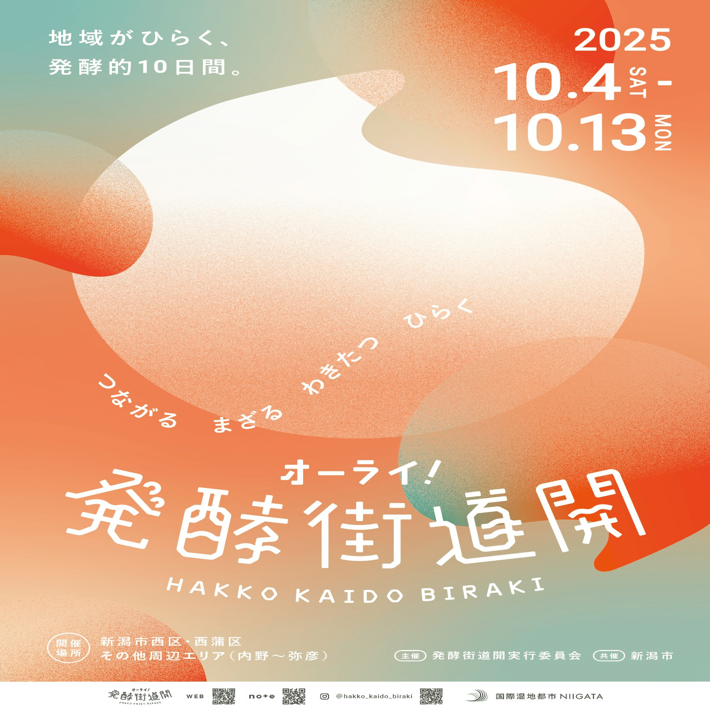 「オーライ!発酵街道開(びらき)2025」は、10月4日(土)から10月13日(月・祝)の10日間、新潟市の西側エリアで「発酵」をテーマに、地域が一斉に開くイベントです。