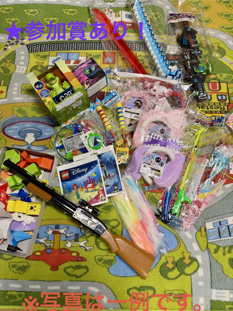 的を倒して頂きます。その点数に応じて景品が変わります。駄菓子、景品たくさん持って出店したいと思います。尚、特賞もご用意しますのでお楽しみに!