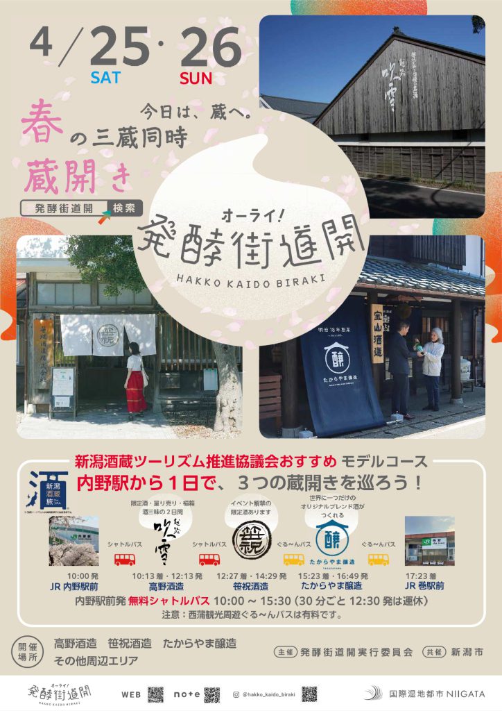 当日の交通はJR越後線 巻駅より「にしかん周遊ぐる~んバス」に乗車し、笹祝酒造で下車してください。