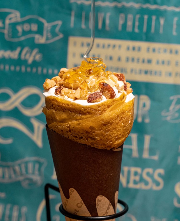 沖縄産黒糖を100パーセント使用したもちもち生地のクレープをご提供いたします!
